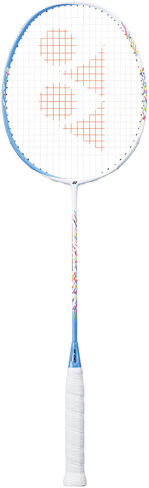 スマッシュパワーとショット威力を高めるラケット設計。広いスウィートエリアと華やかなカラーデザイン。