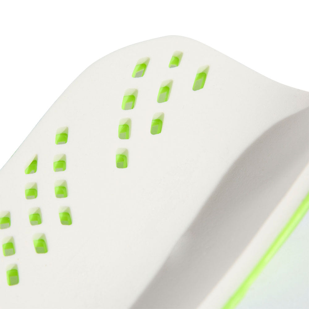 パーフォレーション加工のEVA製裏張り、パーフォレーション加工の屈曲性に優れたハードシールド、アシンメトリーデザイン