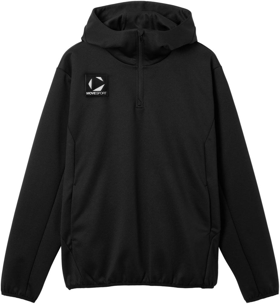 はっ水・ストレッチ機能付きのフリースフーディ。ジャケット起毛と高い衿で保温性を高めた設計。