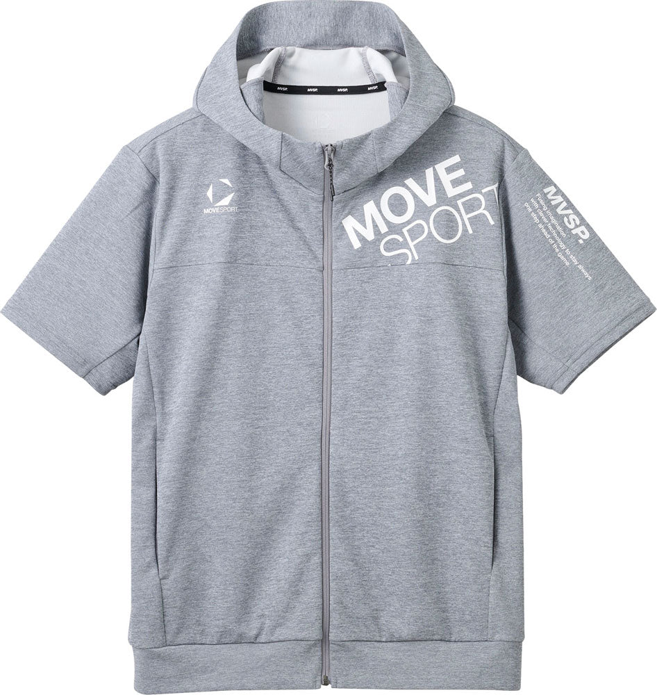 左肩~袖にかけてあしらわれたMOVESPORTグラフィックが印象的なジャージ半袖フーディー膨らみとナチュラルな風合いを兼ね備えた上品な杢感が特徴のジャージ素材。身体の動きを妨げない2WAYストレッチ性に優れ、快適な着心地です。