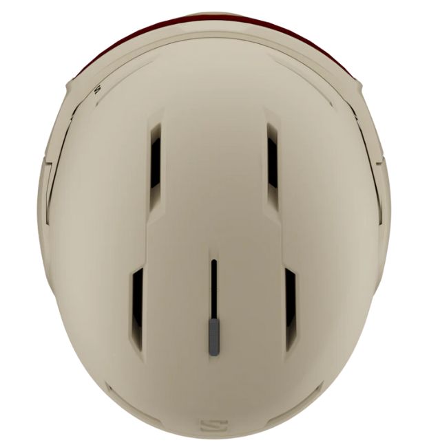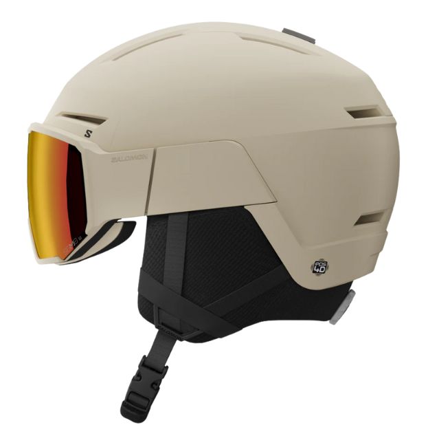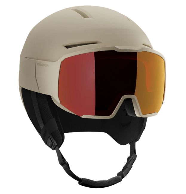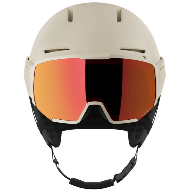 Salomon の薄型 Osmo SIGMA™ バイザーヘルメット。EPS、PC シェル、ストラップなど、一部にリサイクル素材を使用したこの一体型モデルは、色のコントラストを高める SIGMA™ バイザーと、ヘルメットのフィット感を簡単に微調整できる Custom Dial V を装備し、眼鏡をかけたままでも装着可能です。