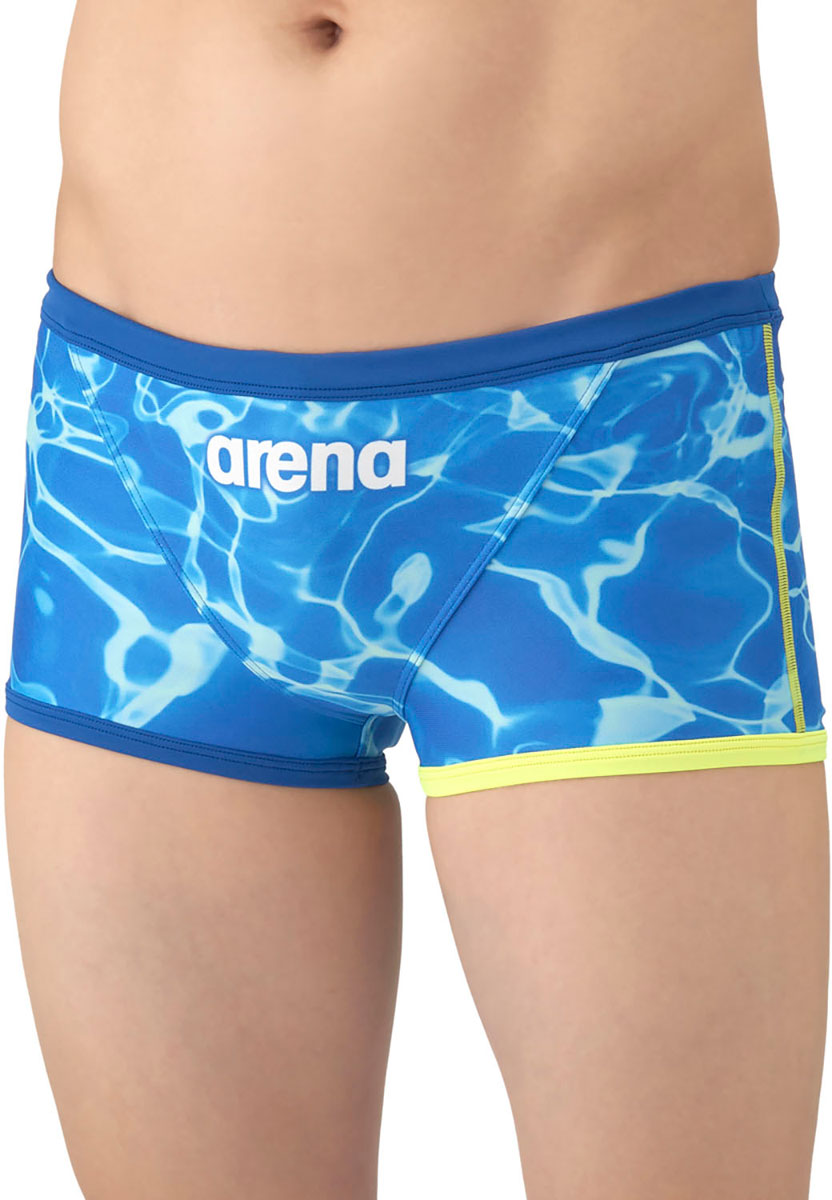 トレーニングカテゴリー「TOUGHSUITシリーズ」。大会に向けて練習を重ねる頻度が高いスイマーにオススメの練習用水着。環境に配慮したリサイクルポリエステル素材「タフスキンT2E」を使用し塩素に強く長持ち。アドバイザリー契約を締結した選手たちと共にデザインを作成した「チームアリーナコレクション」。25FWのデザインテーマは水をイメージ。水をテーマに、水に反射した光のキラキラとした自然の中の美しさを表現。水が色々なものと混ざり合い繋がり広がっていくように、アリーナとスイマーは水で繋がっているという意味を込めたデザイン。多彩な色使いと、チームアリーナロゴを大きく配置する事により、視覚的なインパクトを与えるカッコいいスタイル。村佐達也選手、水沼尚輝選手、柳本幸之介選手、寺門弦輝選手着用。前身頃、後身頃に黒の裏地付き。ショートレッグタイプ。
