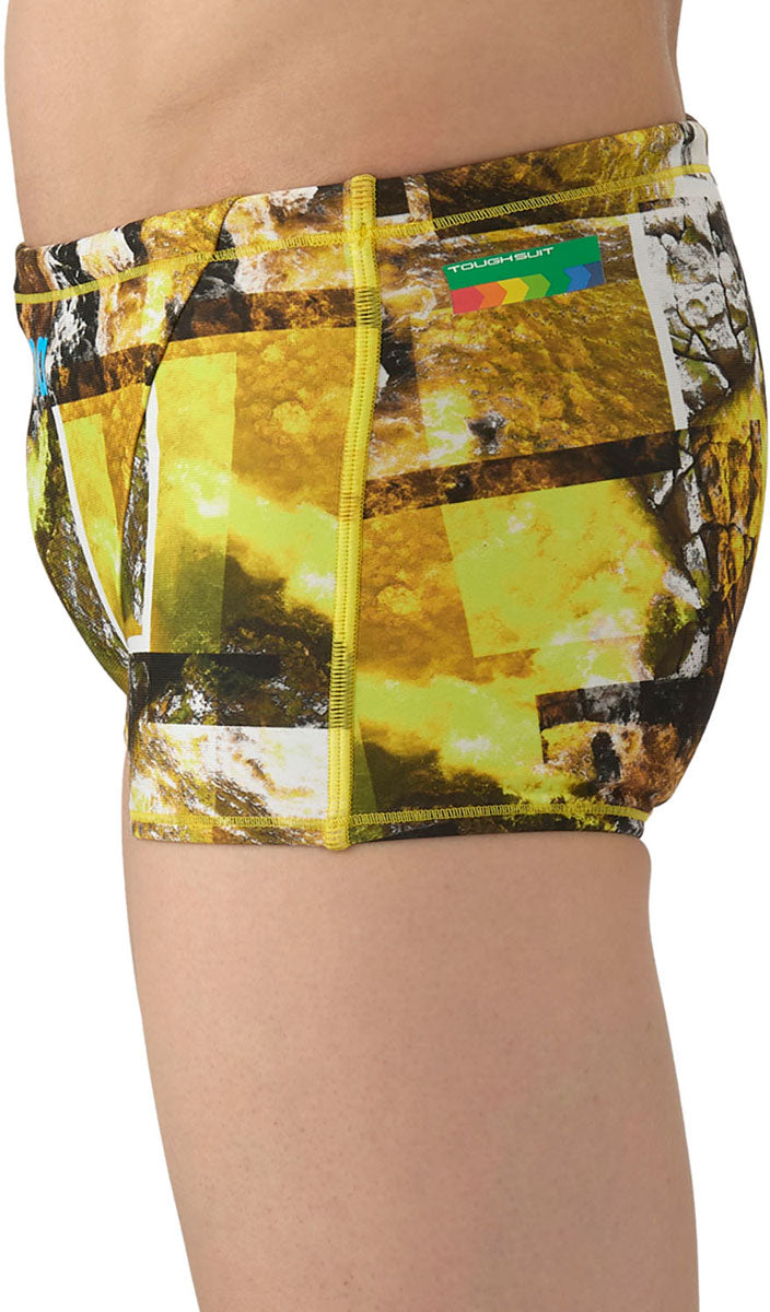 トレーニングカテゴリー「TOUGHSUITシリーズ」。大会に向けて練習を重ねる頻度が高いスイマーにオススメの練習用水着。環境に配慮したリサイクルポリエステル素材「タフスキンT2E」を使用し塩素に強く長持ち。シーズンテーマのWAVESの総柄ショートレッグタイプ。岩礁にぶつかり合う波が自然のエネルギーを感じさせてくれるデザインを4配色で表現。前身頃、後身頃に黒の裏地付き。※この商品は縫製上、一点一点プリント柄の見え方に違いが生じますので予めご了承ください。
