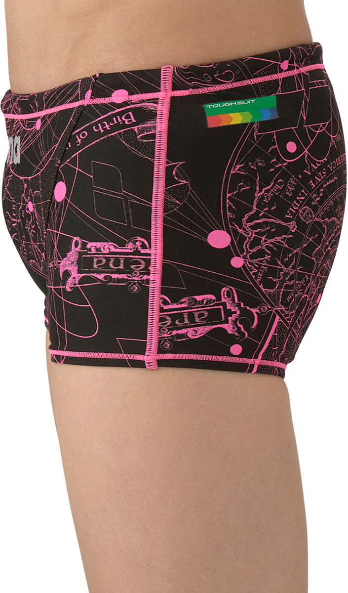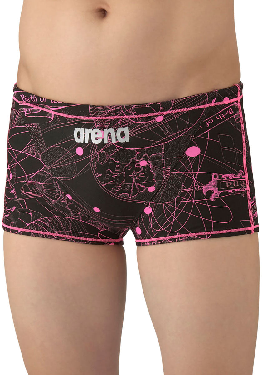 トレーニングカテゴリー「TOUGHSUITシリーズ」。大会に向けて練習を重ねる頻度が高いスイマーにオススメの練習用水着。環境に配慮したリサイクルポリエステル素材「タフスキンEP」を使用し塩素に強く長持ち。シーズンテーマのBirTh of WaTerの総柄ショートレッグタイプ。宇宙誕生から現在までの長い進化の過程の中で奇跡的に誕生した地球の壮大で神秘的なグラフィックを4配色で表現。シンプルなデザインの中に洗練された美しさを感じさせるデザイン。前身頃、後身頃に黒の裏地付き。※この商品は縫製上、一点一点プリント柄の見え方に違いが生じますので予めご了承ください。