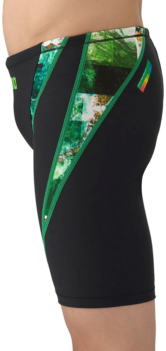 トレーニングカテゴリー「TOUGHSUITシリーズ」。大会に向けて練習を重ねる頻度が高いスイマーにオススメの練習用水着。環境に配慮したリサイクルポリエステル素材「タフスキンE及びT2E」を使用し塩素に強く長持ち。シーズンテーマのWAVESの柄切替えハーフレッグタイプ。岩礁にぶつかり合う波が自然のエネルギーを感じさせてくれるデザインを4配色で表現。流れる水のような切替えの仕様がシンプルの中に洗練された印象を与えるデザイン。前当て部分に黒の裏地付き。※この商品は縫製上、一点一点プリント柄の見え方に違いが生じますので予めご了承ください。