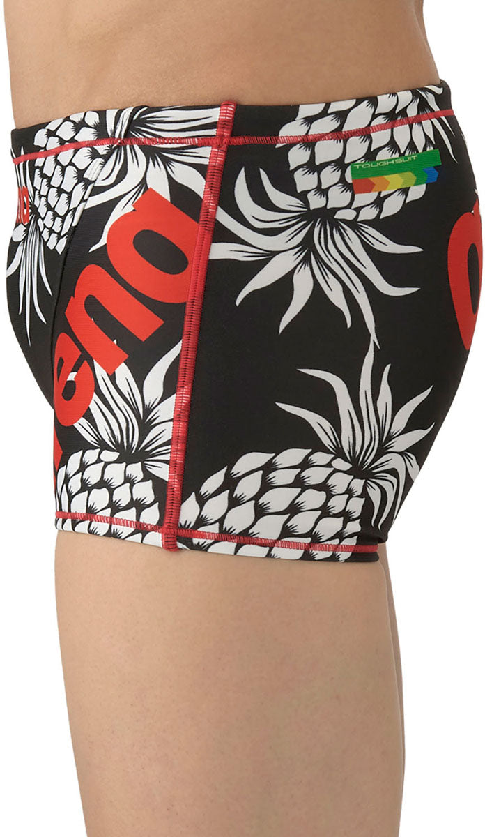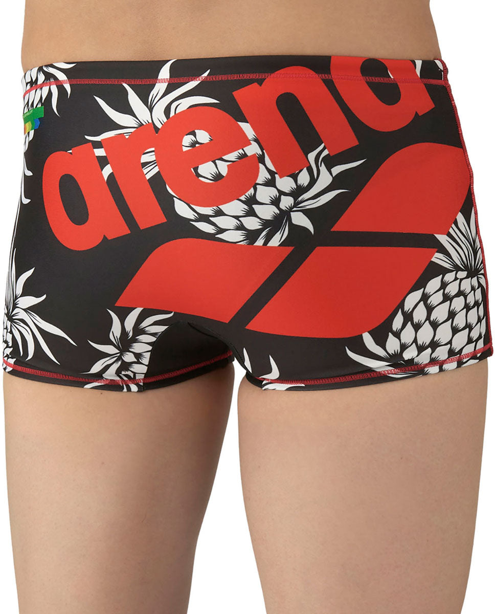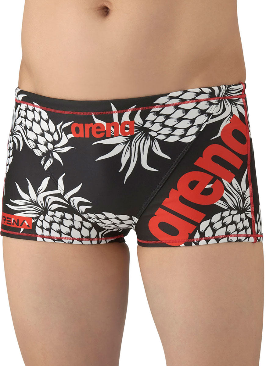 トレーニングカテゴリー「TOUGHSUITシリーズ」。大会に向けて練習を重ねる頻度が高いスイマーにオススメの練習用水着。環境に配慮したリサイクルポリエステル素材「タフスキンT2E」を使用し塩素に強く長持ち。アリーナロゴが左腿に配置されたデザインの練習水着。スタイリッシュでカッコいいデザインから可愛くトレンド感があるデザインまで、幅広くバリエーションに富んだスタイルを一つの品番で表現。BKBL:地球や宇宙の光と自然の色彩の美しさから着想を得たデザイン。NVWH:パイナップルのモチーフを大胆に使用したカジュアルでトレンド感のあるデザイン。BKPP:アリーナロゴの中にきらめく光の柄を入れたシンプルながらもスタイリッシュな印象を与えるデザイン。PPBK:地球や水の色彩の美しさから着想を得たクールなデザイン。前身頃、後身頃に黒の裏地付き。ショートレッグタイプ。