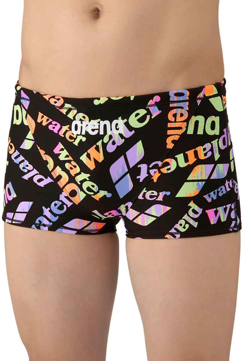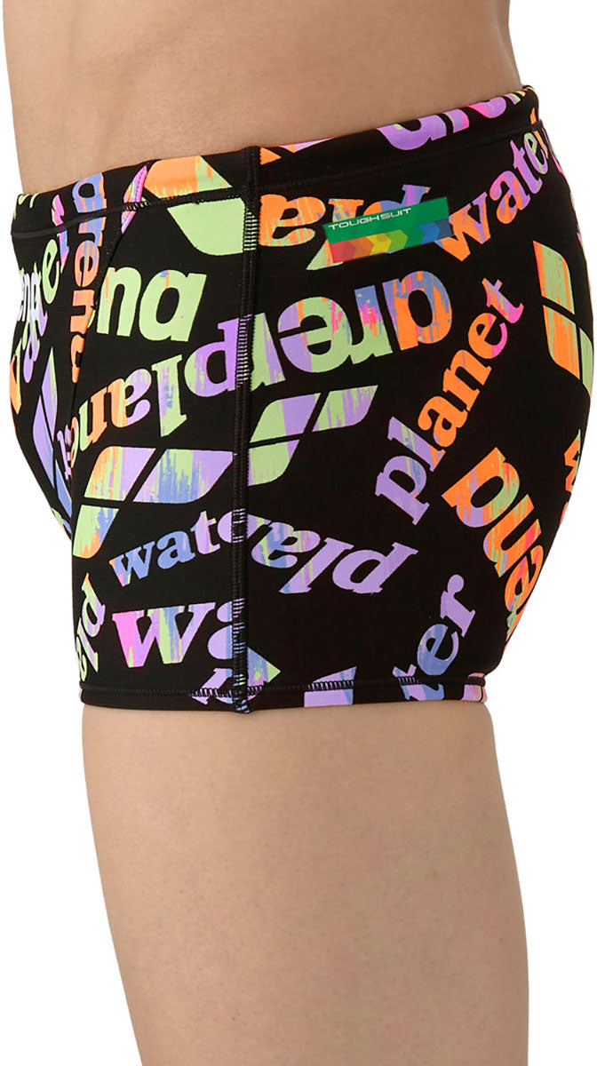 トレーニングカテゴリー「TOUGHSUITシリーズ」。大会に向けて練習を重ねる頻度が高いスイマーにオススメの練習用水着。環境に配慮したリサイクルポリエステル素材「タフスキンEP」を使用し塩素に強く長持ち。鮮やかで多彩な色合いが特徴。ポップで可愛いデザインが視覚的に活気を与え目を引くデザインを4配色展開。前身頃、後身頃に黒の裏地付き。ショートレッグタイプ。※この商品は縫製上、一点一点プリント柄の見え方に違いが生じますので予めご了承ください。