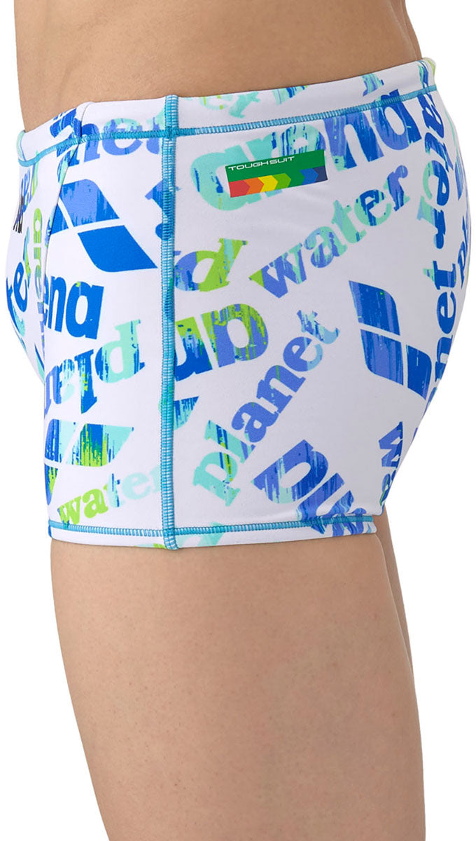 トレーニングカテゴリー「TOUGHSUITシリーズ」。大会に向けて練習を重ねる頻度が高いスイマーにオススメの練習用水着。環境に配慮したリサイクルポリエステル素材「タフスキンEP」を使用し塩素に強く長持ち。鮮やかで多彩な色合いが特徴。ポップで可愛いデザインが視覚的に活気を与え目を引くデザインを4配色展開。前身頃、後身頃に黒の裏地付き。ショートレッグタイプ。※この商品は縫製上、一点一点プリント柄の見え方に違いが生じますので予めご了承ください。