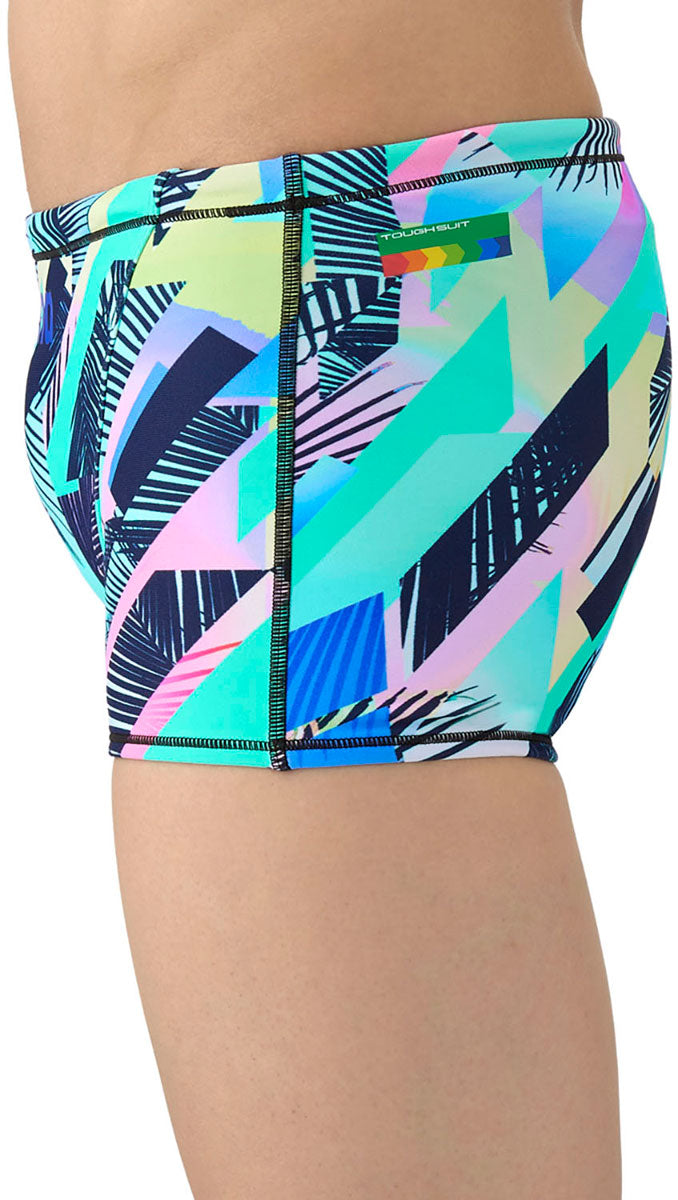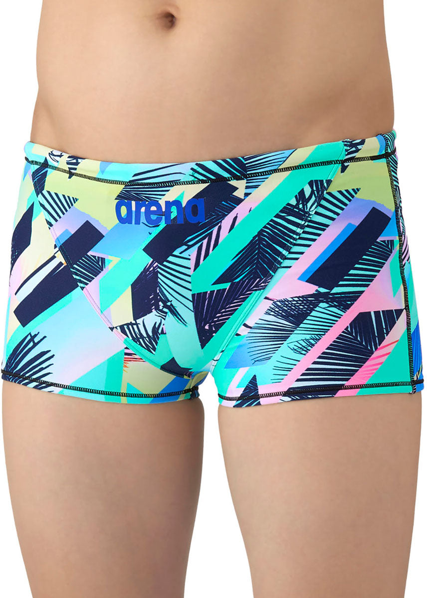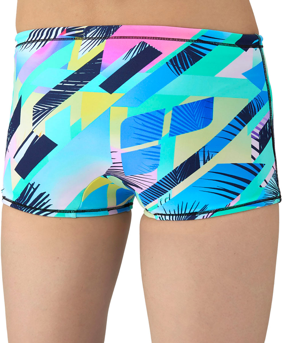 トレーニングカテゴリー「TOUGHSUITシリーズ」。大会に向けて練習を重ねる頻度が高いスイマーにオススメの練習用水着。環境に配慮したリサイクルポリエステル素材「タフスキンEP」を使用し塩素に強く長持ち。自然の美しさからインスピレーションを得たリーフ柄と現代的で洗練された印象を与える幾何学柄を組み合わせたデザイン。前身頃、後身頃に黒の裏地付き。ショートレッグタイプ。※この商品は縫製上、一点一点プリント柄の見え方に違いが生じますので予めご了承ください。