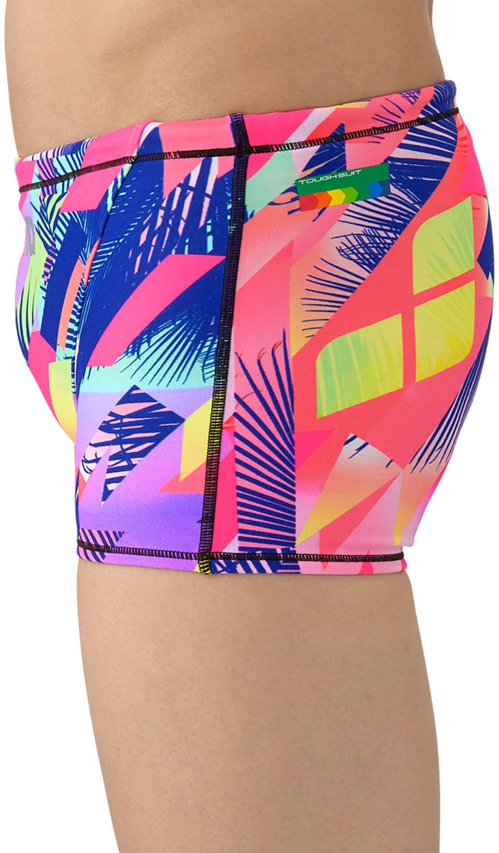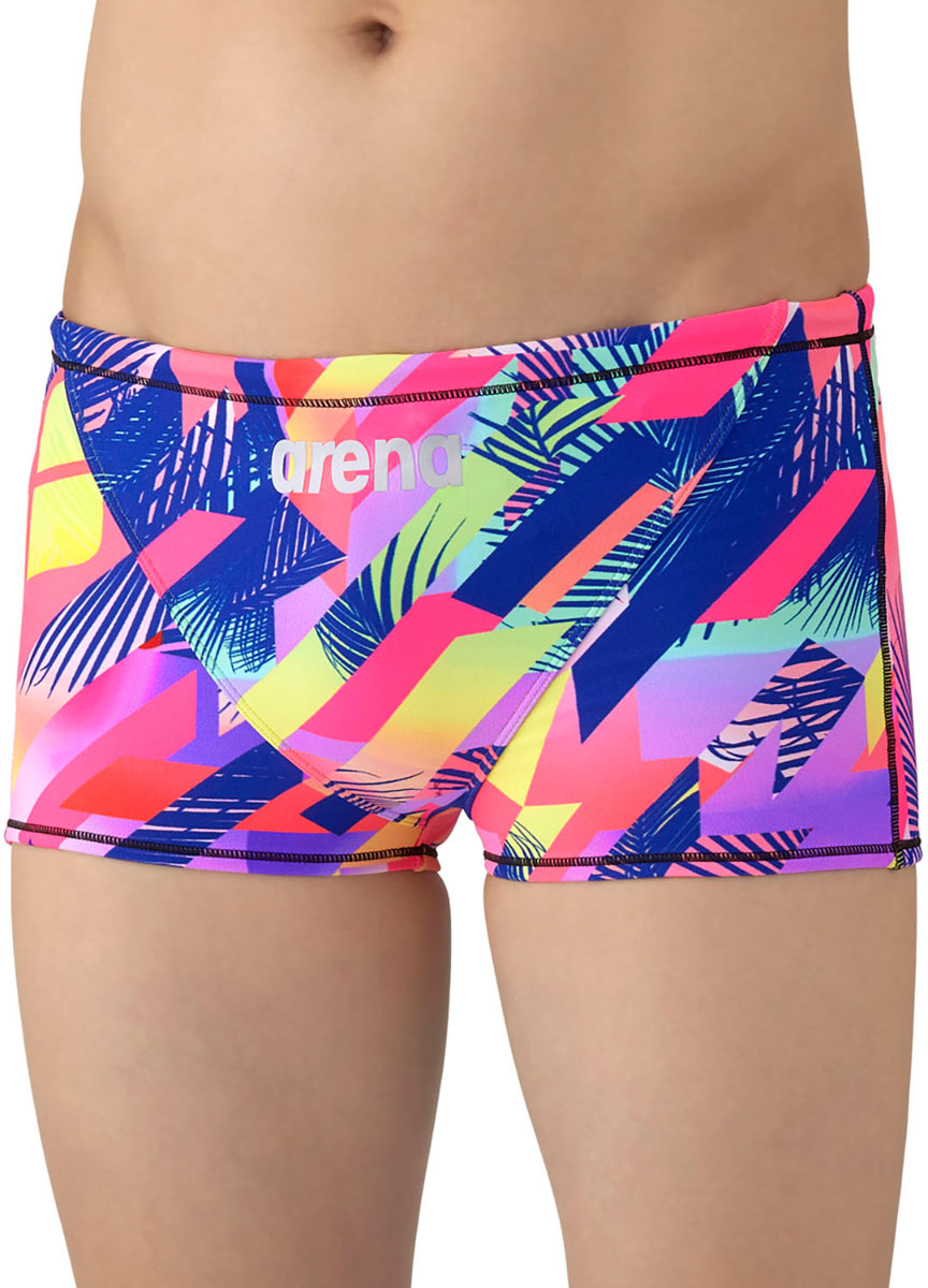 トレーニングカテゴリー「TOUGHSUITシリーズ」。大会に向けて練習を重ねる頻度が高いスイマーにオススメの練習用水着。環境に配慮したリサイクルポリエステル素材「タフスキンEP」を使用し塩素に強く長持ち。自然の美しさからインスピレーションを得たリーフ柄と現代的で洗練された印象を与える幾何学柄を組み合わせたデザイン。前身頃、後身頃に黒の裏地付き。ショートレッグタイプ。※この商品は縫製上、一点一点プリント柄の見え方に違いが生じますので予めご了承ください。