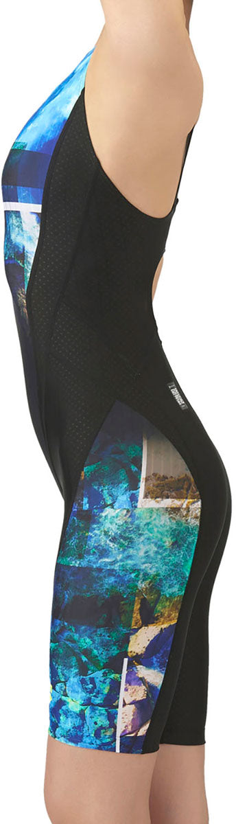 レディース 競泳水着 レーシングワンピーススパッツ オープンバック ハーフレッグ 水泳
