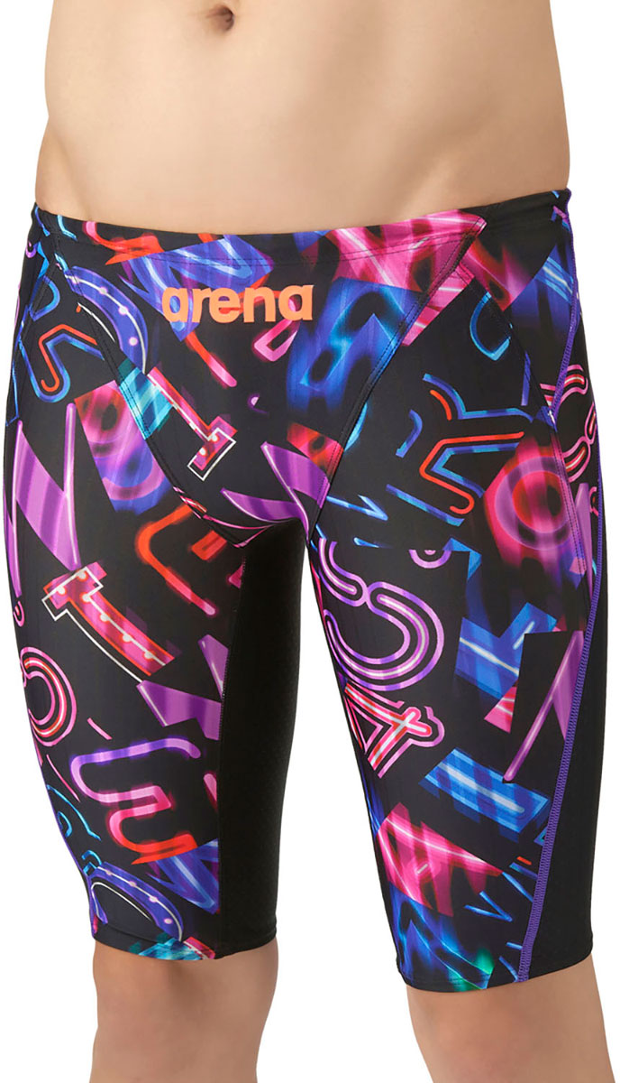 初級スイマーへ向けた「AQUA RACING」シリーズ。公式大会に出場するために必要なWORLD AQUATICS(世界水泳連盟)承認モデルのジュニア用競泳水着。伸びのあるフィット感を実現したニット素材AQUASTRIPE-Dを採用。安心感のある地厚な生地で塩素に強く長持ちし、はっ水加工でシャープな水切れが特徴。初めてレースに出場するスイマーにオススメ。ネオンのようなランダムなロゴを表現した総柄デザイン。※この商品は縫製上、一点一点プリント柄の見え方に違いが生じますので予めご了承ください。