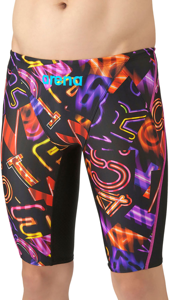 初級スイマーへ向けた「AQUA RACING」シリーズ。公式大会に出場するために必要なWORLD AQUATICS(世界水泳連盟)承認モデルの競泳水着。伸びのあるフィット感を実現したニット素材AQUASTRIPE-Dを採用。安心感のある地厚な生地で塩素に強く長持ちし、はっ水加工でシャープな水切れが特徴。初めてレースに出場するスイマーにオススメ。ネオンのようなランダムなロゴを表現した総柄デザイン。※この商品は縫製上、一点一点プリント柄の見え方に違いが生じますので予めご了承ください。