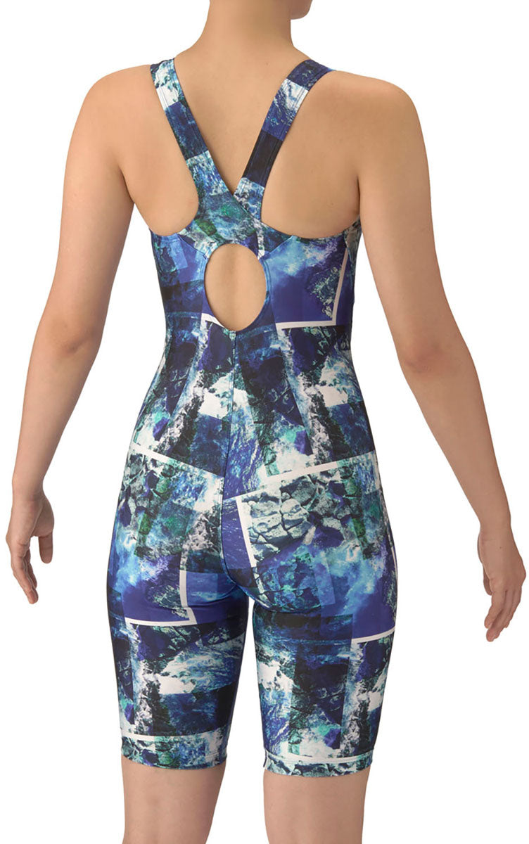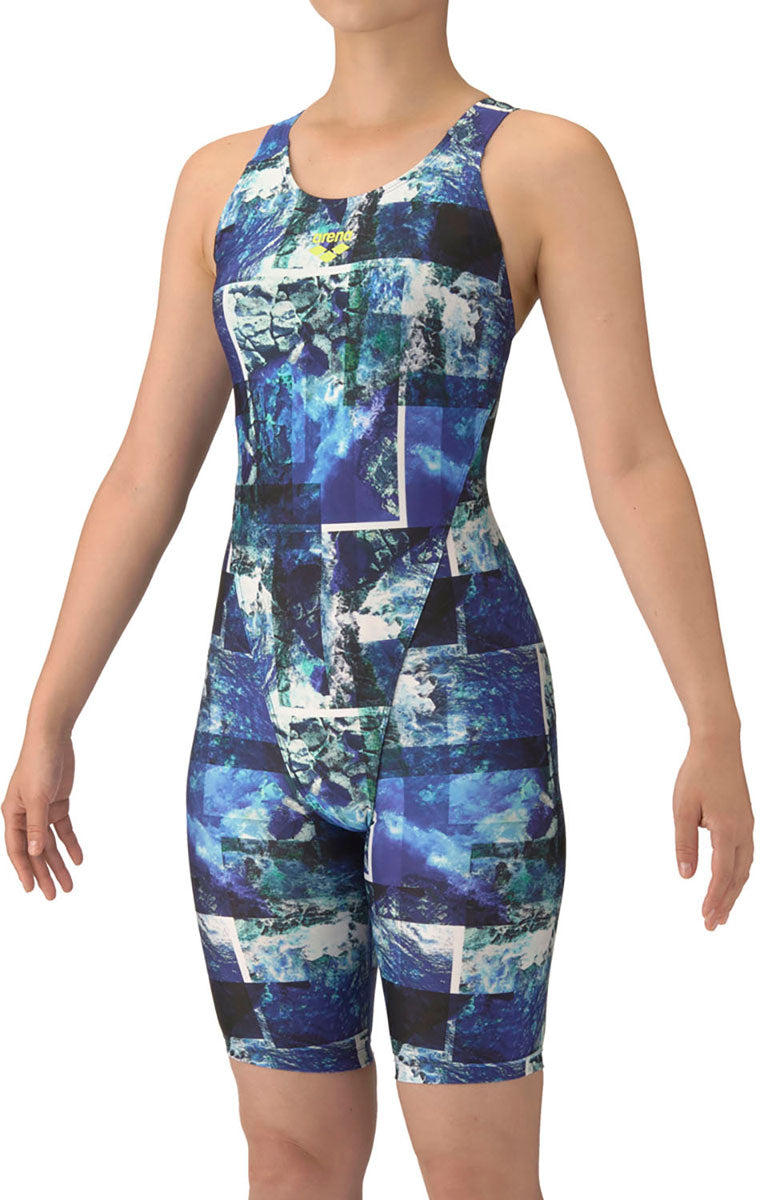 【AQUA EXA-アクアエクサ】「泳ぎやすさ」を追求したフィットネス水着、AQUA EXA(アクアエクサ)シリーズ。上達を目指すフィットネススイマーにおすすめ。あきの少ないオープンバックタイプで、背中の露出を抑えつつ、水が抜けるため泳ぎやすい。膝上まで生地があるハーフレッグ丈で、脚の露出を抑えるため、安心感を求める方におすすめ。大きく開いて着脱がしやすい「着やストラップ」搭載。はっ水生地を使用しており、シャープな水きれで軽い泳ぎ心地が特徴。パッドは「ぴったりパッド」を使用しており、水着に縫い込まれているため、水の中でもズレにくくフィット感を重視する方におすすめ。25FWアリーナシーズンテーマの WAVES(ウェ―ブス)デザイン。岩礁にぶつかる波の様子がダイナミックに描かれ、色鮮やかなカラー二ングで表現。※効果や使用感には個人差があります。また、この製品は縫製上、一点一点プリント柄の見え方に違いが生じますので予めご了承ください。