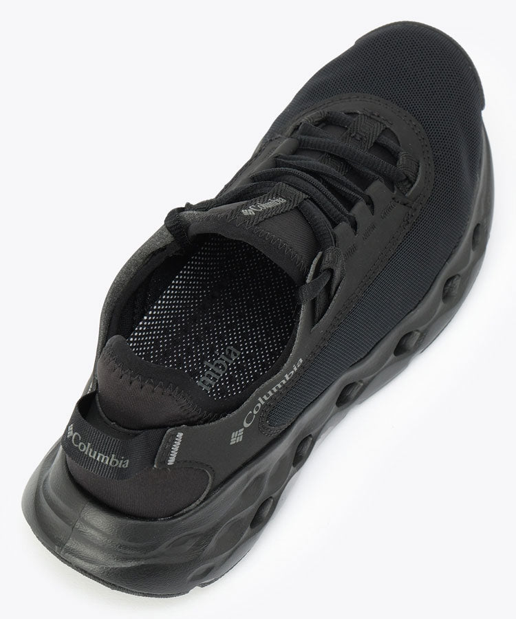 ソールの側面に設けた、複数の排水孔(ドレインホール)が、シューズ内の水を素早く排出するため、水辺でも快適な履き心地を実現。独自のラバーアウトソールデザインが高いトラクションを発揮し、ミッドソールとアウトソールが一体成型された、グランドコンタクトEVAフォーム「オムニグリップライト」を搭載することにより、耐久性と軽量化を両立。アウトソールに負担のかからない箇所は、底面ラバーの面積を極力減らすことで、防滑性を保ちながら軽量性とクッション性の向上を実現しました。