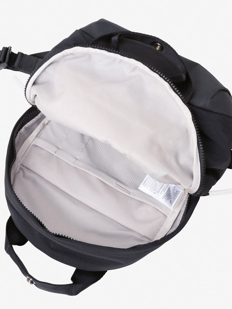 柔らかいタッチ感をもつ160デニールのリサイクルナイロンを使用した、シンプルでクリーンな印象の女性用ミニデイパック(7L)です。ジッパーポケットは、小型モバイルやサングラスの収納に役立つフリースライニングを装備。摩耗が生じやすいボトム部はコーティング補強で耐久性を向上。縫製箇所を少なくすることで、女性らしい丸みと柔らかさを演出したデザインです。