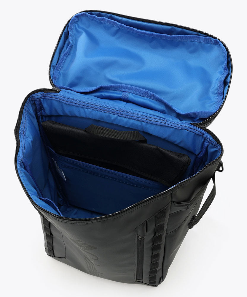 ・Surface-treated material that is resistant to rain and dirt ・An ideal backpack for commuting to school or work, club activities, and other sports ・Boxy silhouette with high storage capacity ・Organizer pocket and key hook on the front side of the main compartment ・Open pocket on the back side inside the main compartment ・Removable PC sleeve ・Zipper pocket on the right side ・Large reflective logo print on the front ・Back design with a ventilation channel in the center for high comfort ・30L capacity