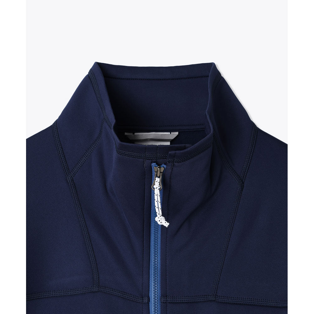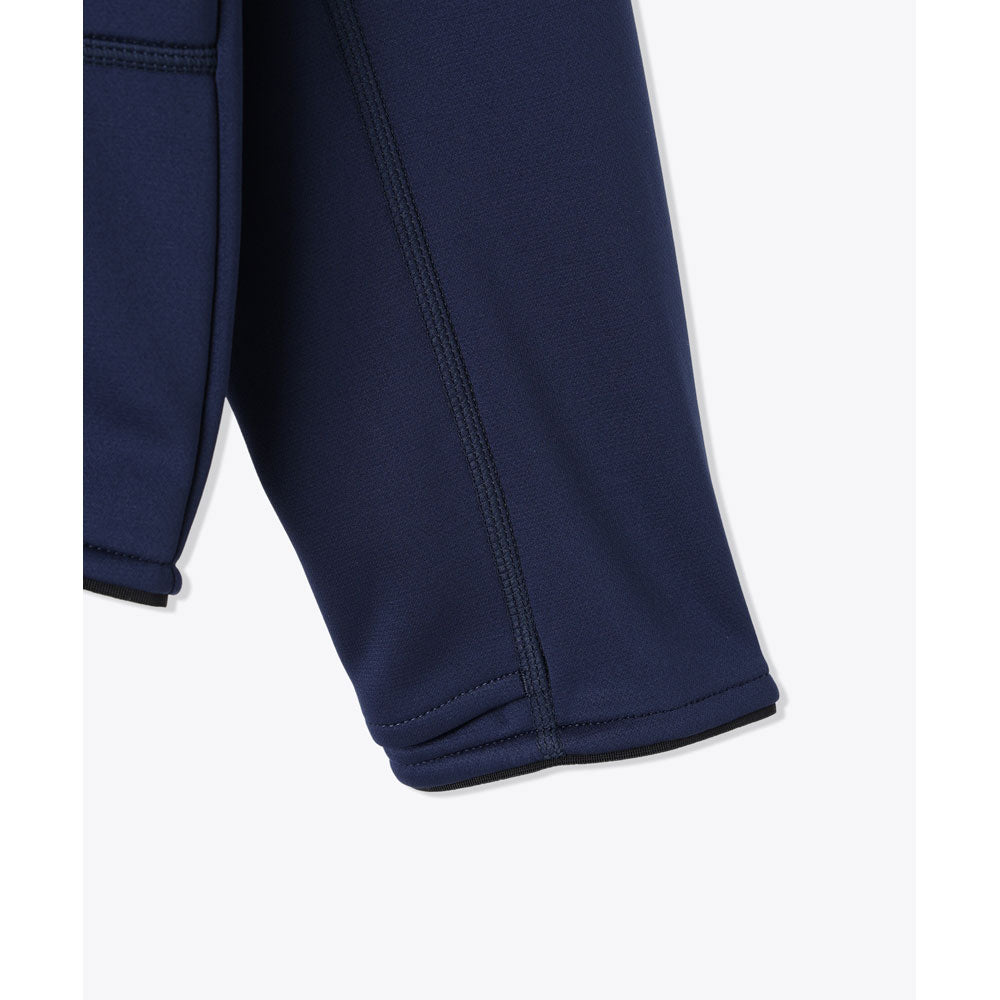 活動量の多いアクテビティにも対応するポリエステルストレッチファイバー素材は非常に軽くて動きやすく、ポリエステル100%のストレッチ素材で動きやすさと耐久性を高めています。また、レイヤリングに最適な耐摩耗性に優れたスムースな表面感に仕上げました。