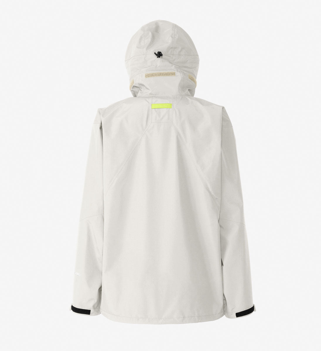 特徴的なデザインとして取り入れているのが、フードのつば先にあしらったフラッシュイエローの配色。悪天時や海でも視認性が高い、アイコニックなカラーです。