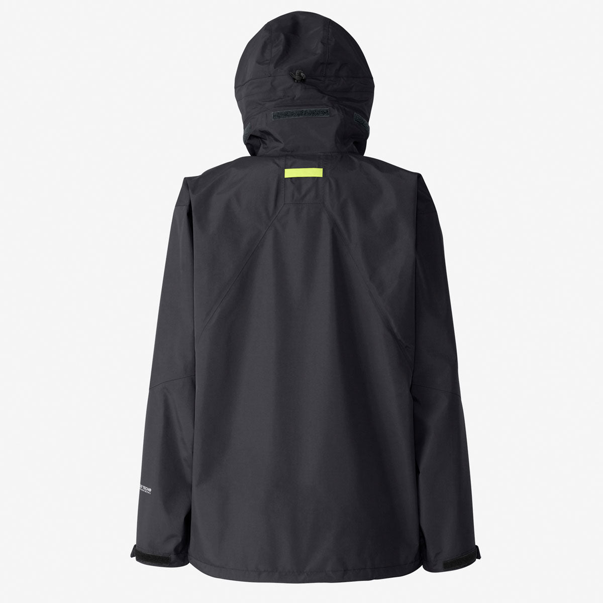 特徴的なデザインとして取り入れているのが、フードのつば先にあしらったフラッシュイエローの配色。悪天時や海でも視認性が高い、アイコニックなカラーです。