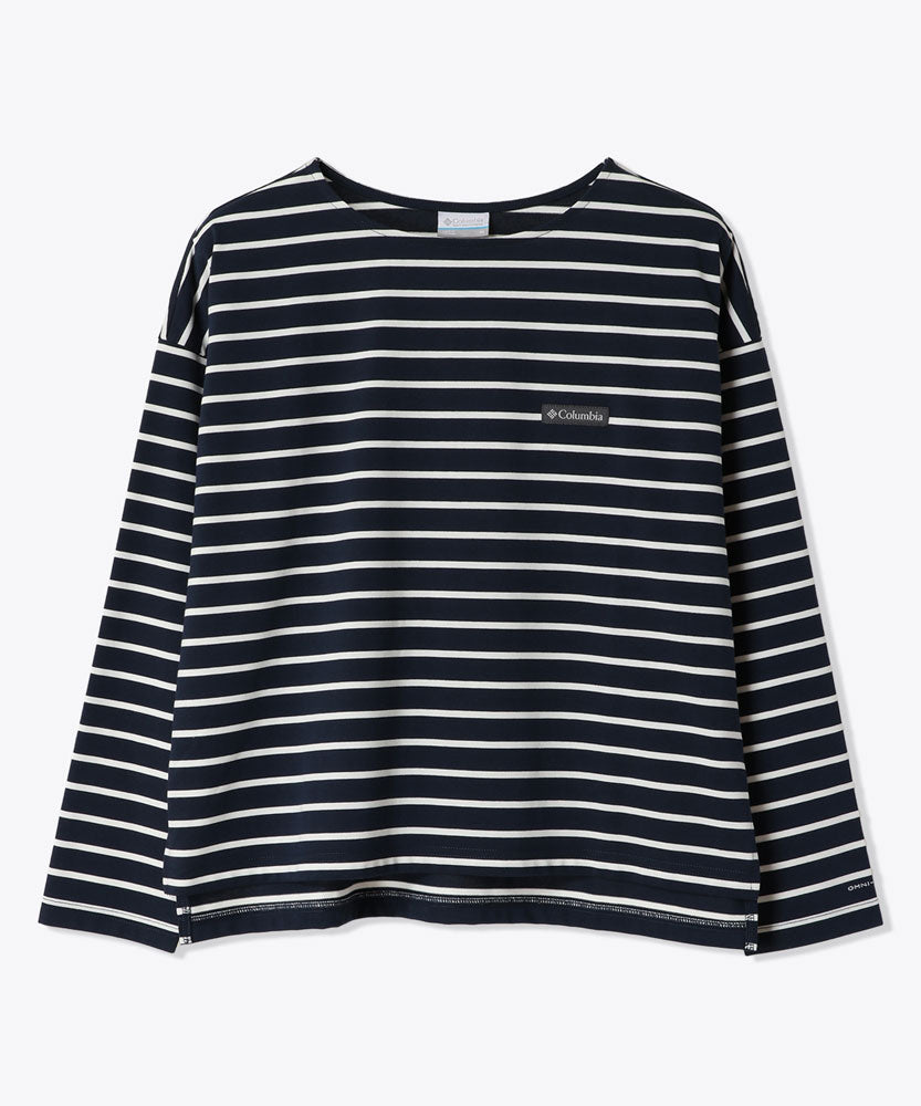 ウィメンズリラクシングモーメントIIロングスリーブクルー ボーダー 長袖 カジュアル