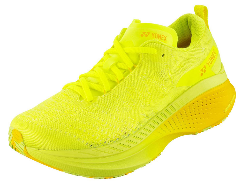 衝撃吸収性と反発性を併せ持つ衝撃吸収反発素材「パワークッション」がさらに進化。素材や形状の研究を重ね、従来の軽量性を維持しながら、衝撃吸収性28%アップ・反発性62%アップ(一般的な衝撃吸収材[EVA]との比較)を実現し、12mの高さから落とした生卵が、割れずに6m以上跳ね返る(※ヨネックス(株)調べ)新衝撃吸収反発素材。