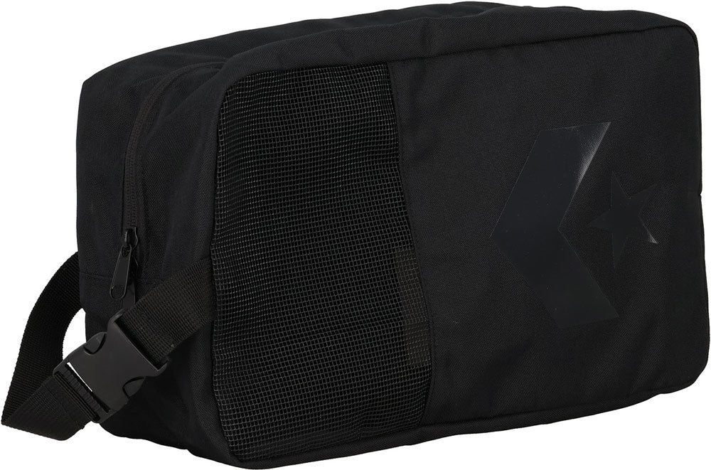 コンバースのハーフメッシュシューズケース。メッシュを採用することで、通気性にも優れ、中身も見えるデザイン。バックルを外してバックパックにも取り付け可能。ファスナーポケット装着で小物も収納可能。