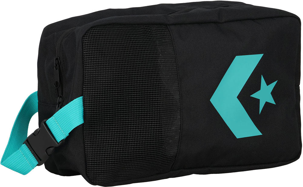 コンバースのハーフメッシュシューズケース。メッシュを採用することで、通気性にも優れ、中身も見えるデザイン。バックルを外してバックパックにも取り付け可能。ファスナーポケット装着で小物も収納可能。