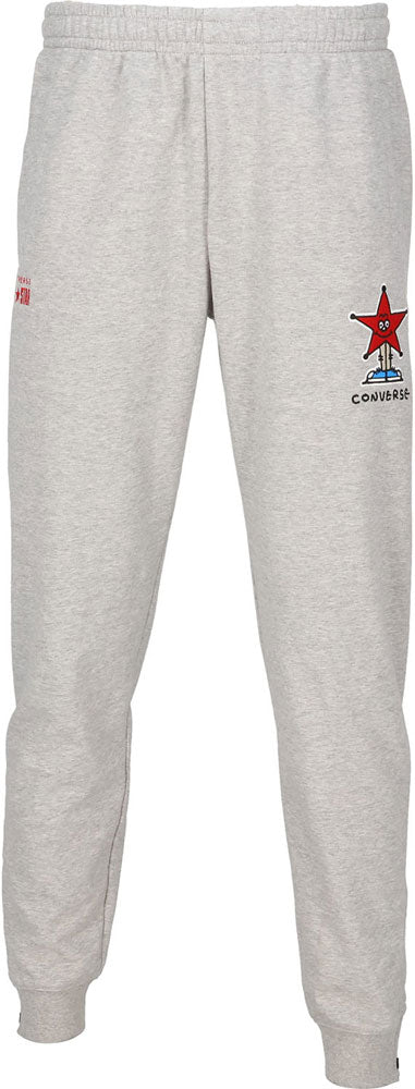 コンバースのスウェットパンツ。Yutaka Kobayashiさんの星のイラストを採用。裏地はタオル地のように柔らかい、頑丈で汗を吸収しやすい素材を使用。裾ファスナー仕様。