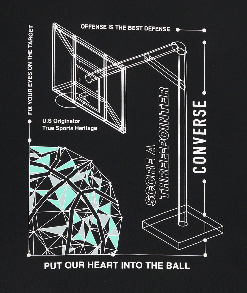 コンバースのプラクティスTシャツ。ワイヤーフレームのバスケットボールを表現したデザイン。柔らかな肌触りに吸汗速乾を兼ね揃えたスポーツ向けアイテム。