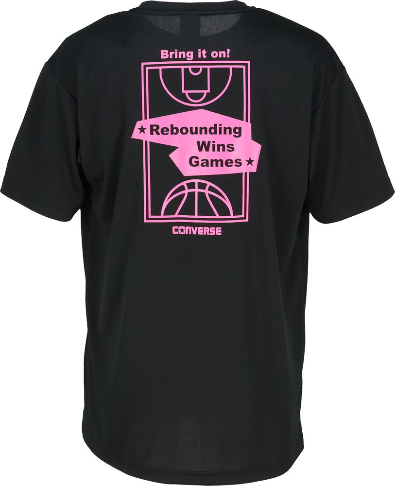 コンバースのプラクティスTシャツ。アメコミの吹き出しを表現したバスケ向けメッセージ。柔らかな肌触りに吸汗速乾を兼ね揃えたスポーツ向けアイテム。