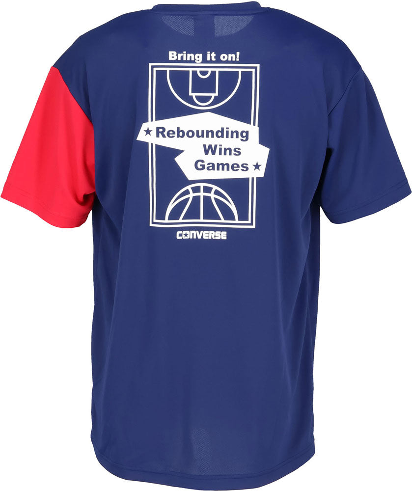 コンバースのプラクティスTシャツ。アメコミの吹き出しを表現したバスケ向けメッセージ。柔らかな肌触りに吸汗速乾を兼ね揃えたスポーツ向けアイテム。