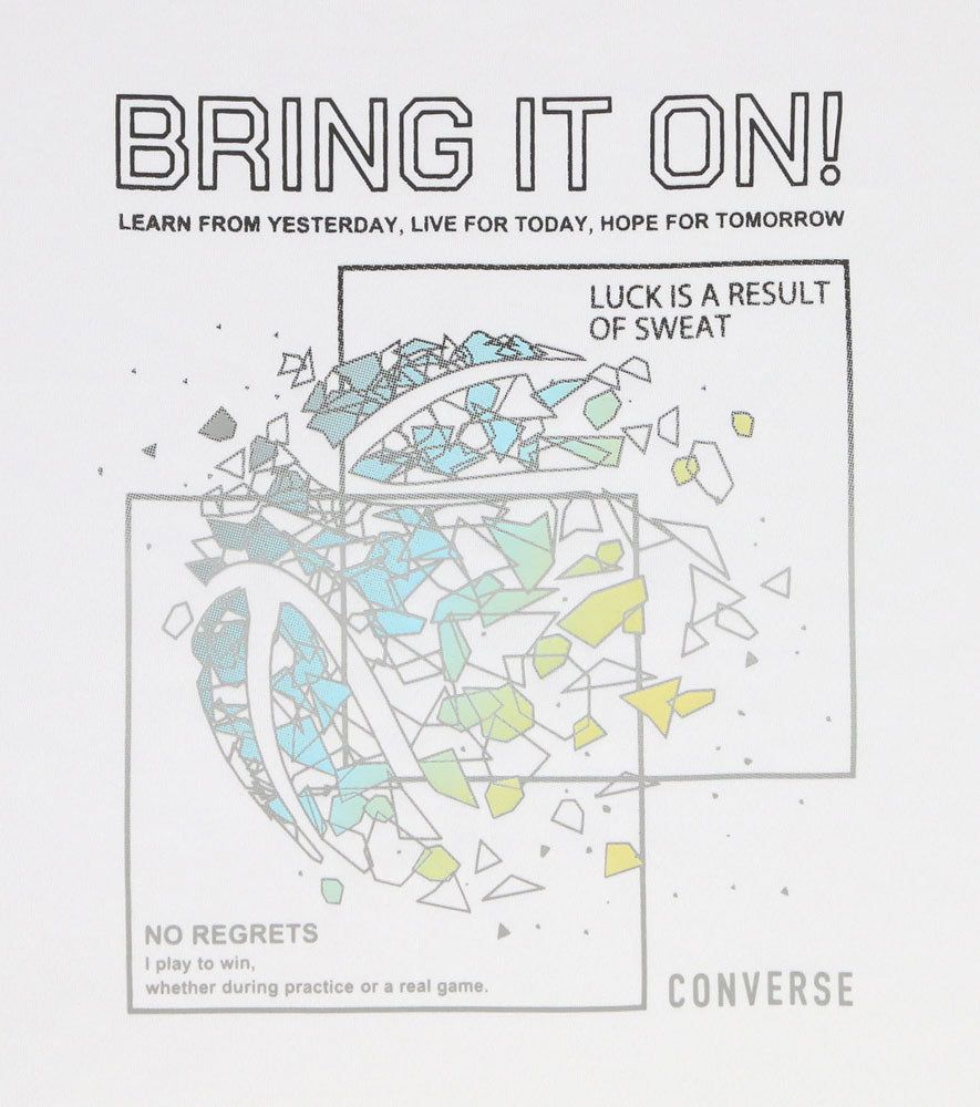 コンバースのロンT。鮮やかなグラデーションを使用したワイヤーフレームのバスケットボールデザイン。柔らかな肌触りに吸汗速乾を兼ね揃えたスポーツ向けアイテム。