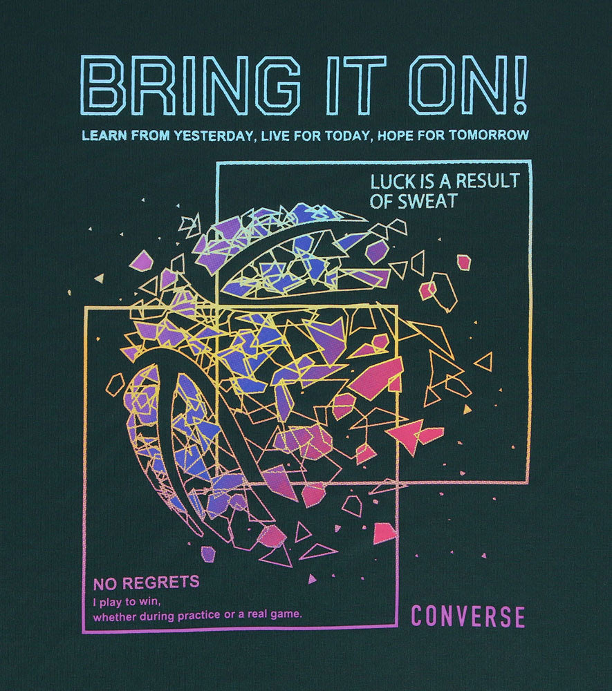 コンバースのロンT。鮮やかなグラデーションを使用したワイヤーフレームのバスケットボールデザイン。柔らかな肌触りに吸汗速乾を兼ね揃えたスポーツ向けアイテム。