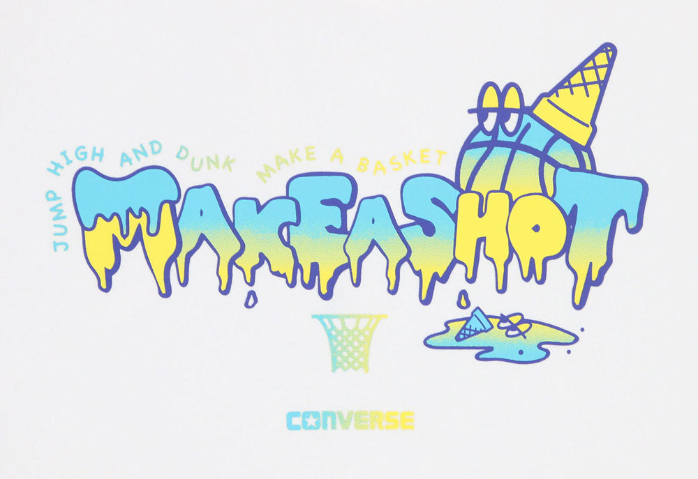 コンバースのジュニアTシャツ。グラデーションとカラフルなボールがキャッチーなデザイン。柔らかな肌触りに吸汗速乾を兼ね揃えたスポーツ向けアイテム。