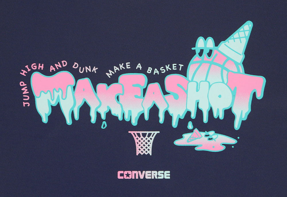 コンバースのジュニアTシャツ。グラデーションとカラフルなボールがキャッチーなデザイン。柔らかな肌触りに吸汗速乾を兼ね揃えたスポーツ向けアイテム。