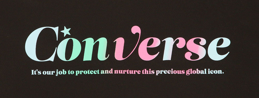 コンバースのジュニアロンT。コンバースを鮮やかなグラデーションで表現。柔らかな肌触りに吸汗速乾を兼ね揃えたスポーツ向けアイテム。