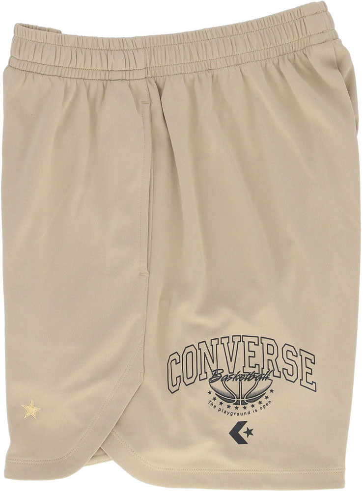 コンバースのトップライン、ゴールドシリーズ。吸汗、速乾性のある機能素材を使用した、シンプルなロゴをプリントしたバスパン。右足のGLORY ROADアイコン転写マークと左足の金糸刺繍がポイント。シーホース三河選手着用予定品番。
