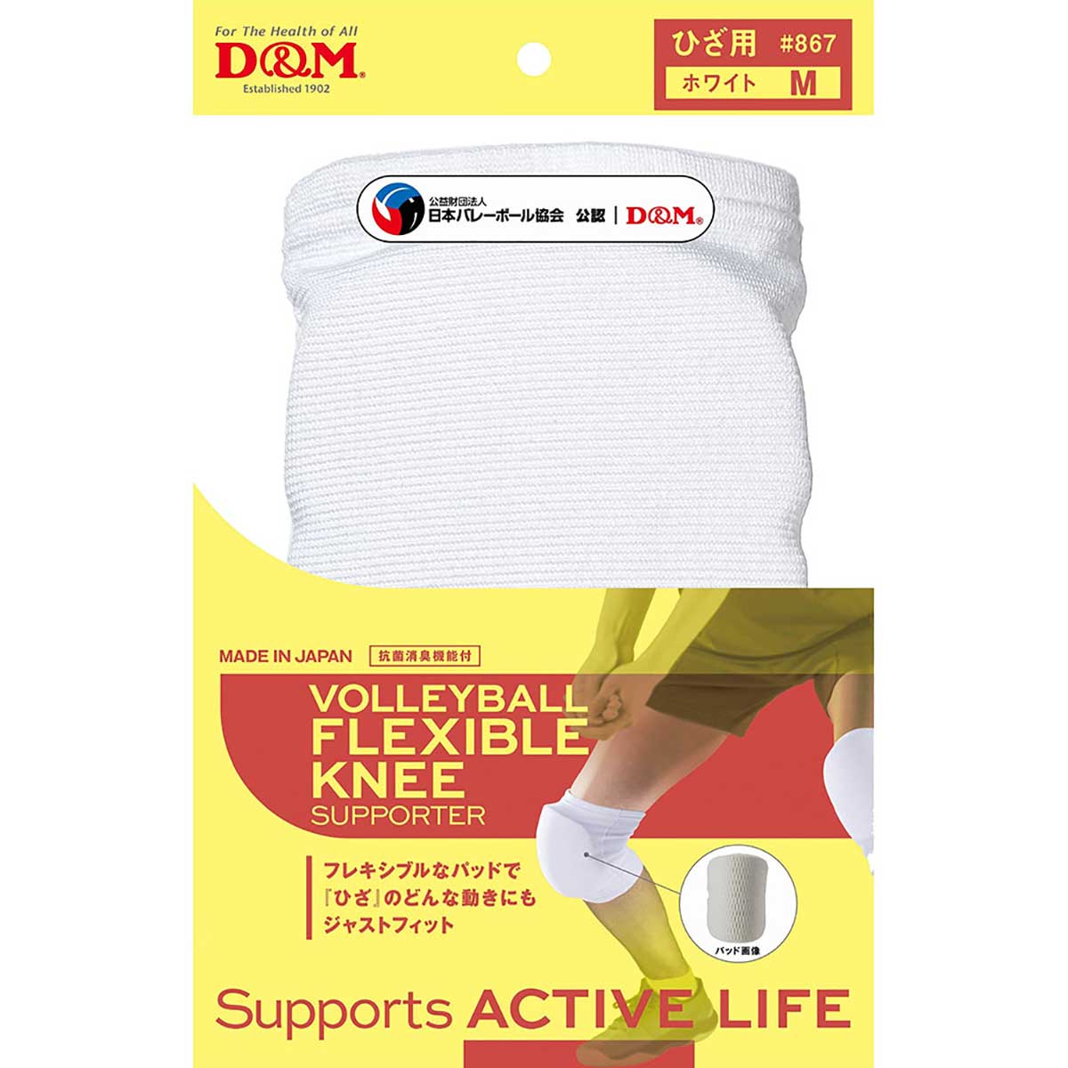 For all volleyball situations. An unprecedented knee support with padding for volleyball that allows for comfortable movement in any position. POINT 1: 3D molded sponge → Special slit processed EVA improves the fit of the padding. POINT 2: The part inside the supporter that comes into contact with the skin is made of antibacterial and deodorizing smooth material for improved comfort. POINT 3: The vertical stretch function provides an excellent fit even during intense movements, supporting the player's movements.