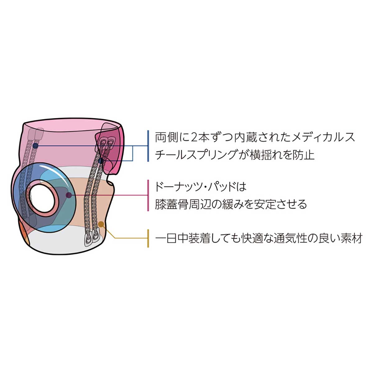 Two built-in medical steel springs on each side prevent sideways movement. Donut pads stabilize the kneecap area. Breathable material for all-day comfort.
