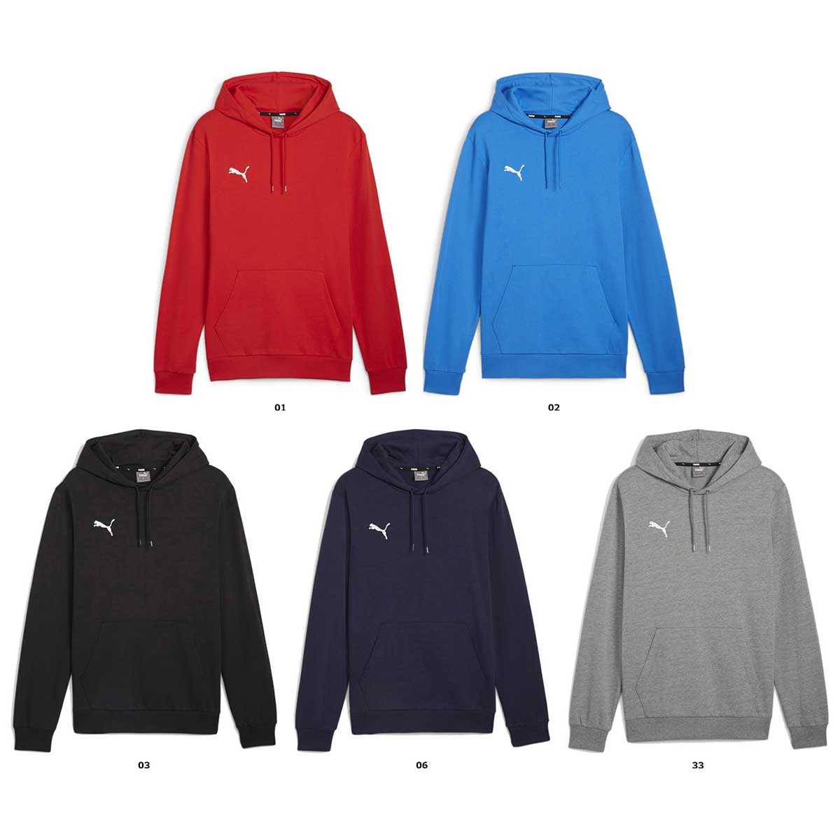 ワントーンでまとめたミニマルなフォルムに、プーマキャット刺繍を添えたTEAMGOALカジュアルフーディーです。肌馴染みのよいコットン100%生地の柔らかな風合いが叶えるストレスフリーな着用感も魅力となっています。合わせるアイテムを選ばず様々なスタイリングにマッチするノームコアなデザインはワードローブの強い味方。
