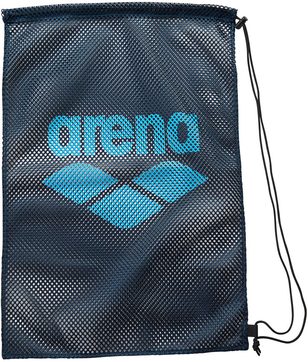 水はけの良いメッシュ素材のメッシュバッグ。メッシュ素材を使用しているので、ビート板・フィン・パドル・シュノーケルなどの濡れるトレーニングツールを収納するのにおススメ。arenaロゴを全面に大きく抑えたインパクトのあるデザイン。