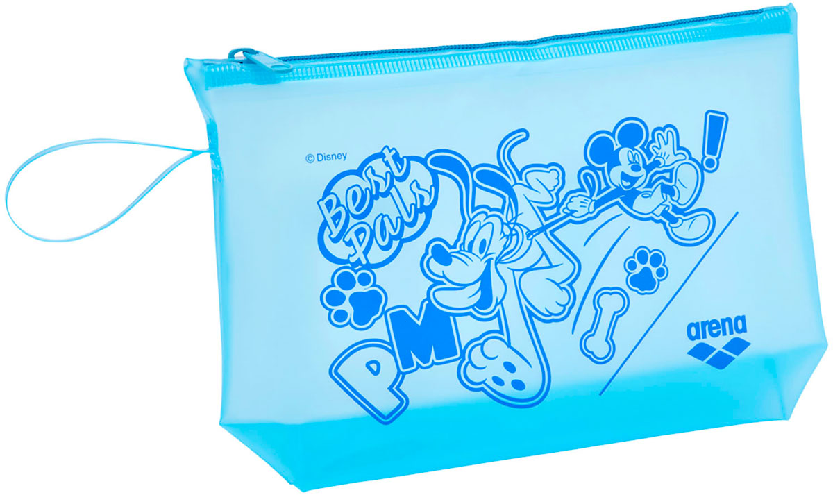 Disney(ディズニー)デザインのプルーフバッグ。防水素材を使用しているため、プールで泳いだあとに濡れた水着やキャップ、セームタオルなどを収納するのに便利。コンパクトなサイズ感のため、シャンプーやスキンケア用品など、細々とした日用品を入れるのもおすすめ。”ミッキー” と愛犬の ”プルート” が仲良く過ごす様子をラバープリントで表現したデザイン。”プルート” の足跡や ”Best Pals(相棒)” のフレーズが仲の良さを可愛く表現。デザイン連動の水着(AS5SWM52L / AS5SWM52G / AS5SWM53L / AS5SWM54L)やメッシュキャップ(AS5SSC81U)とのコーディネートもおすすめ。