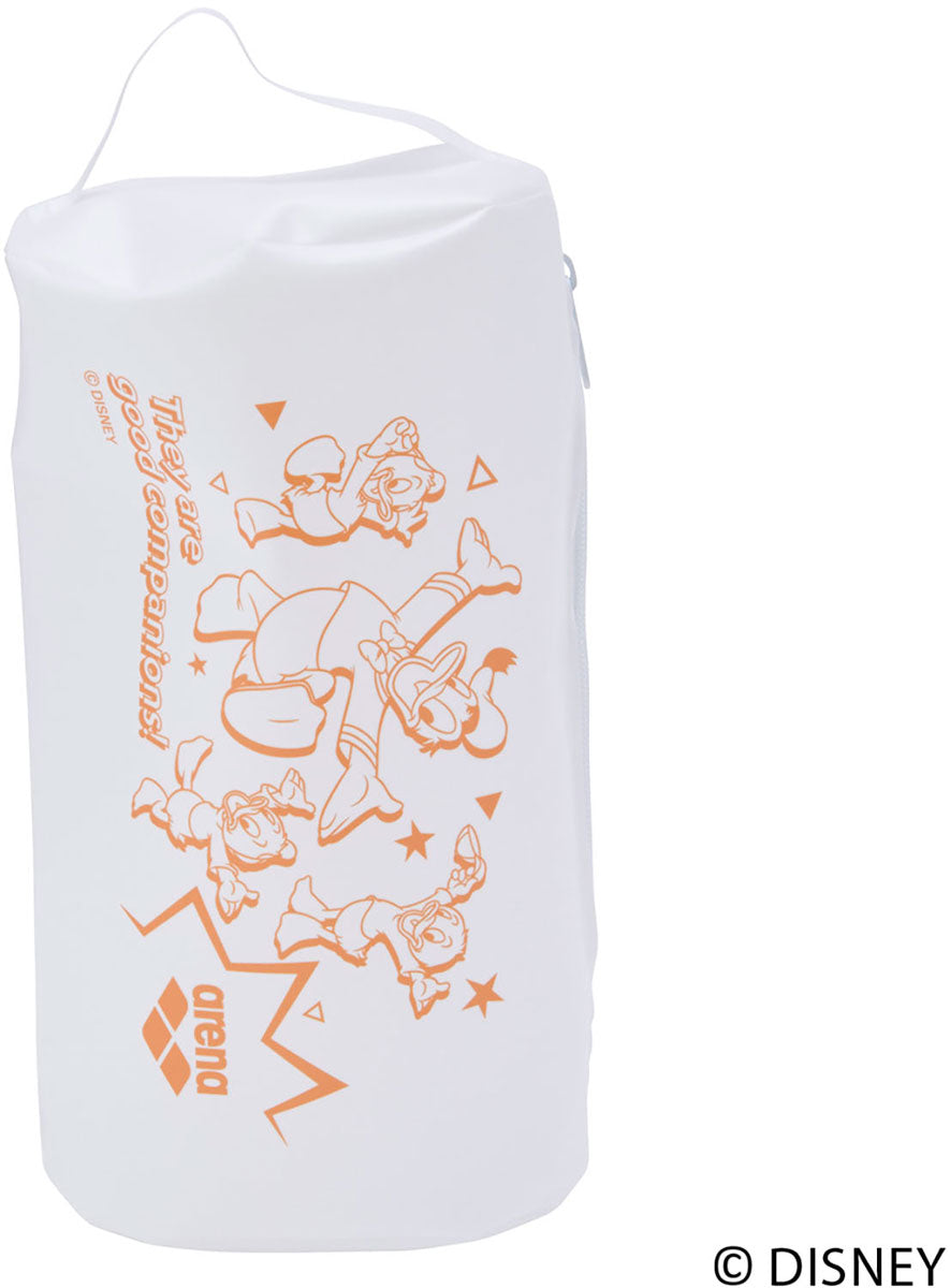 Disney(ディズニー)デザインのプルーフバッグ。1つ持っているとスイマーに便利なラウンド型。プールで泳いだあとに濡れた水着やキャップ、セームタオルなどを収納するのに便利。また、バッグインバッグがしやすいサイズのため、トレーニングに行くときのスイミング用品の収納におすすめ。中が見やすいブルー、ピンクと、中が見えにくいホワイトで使用用途や好みに合わせて使用可能。ドナルド・ダックとその甥っ子たちヒューイ・デューイ・ルーイをプリントした楽しい雰囲気のデザイン。デザイン連動の水着やメッシュキャップとのコーディネートもおすすめ(水着の対象品番:AS5FWM52L/AS5FWM52G/AS5FWM53L/AS5FWM53G/AS5FWM54L/AS5FWM55L、メッシュキャップの対象品番:AS5FSC81U)。