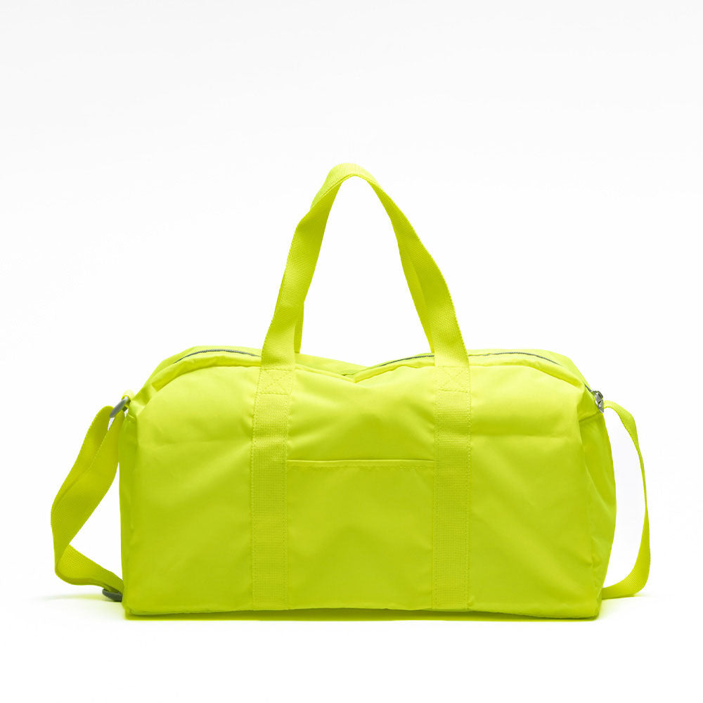 ボストンタイプのプールバッグ。ショルダーストラップは長さ調整できる。内側に名前が記入できるネームタグあり。