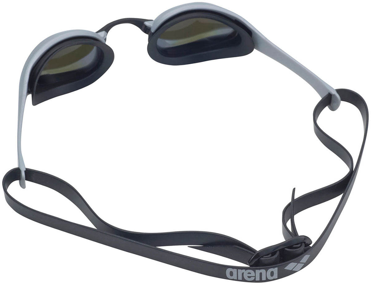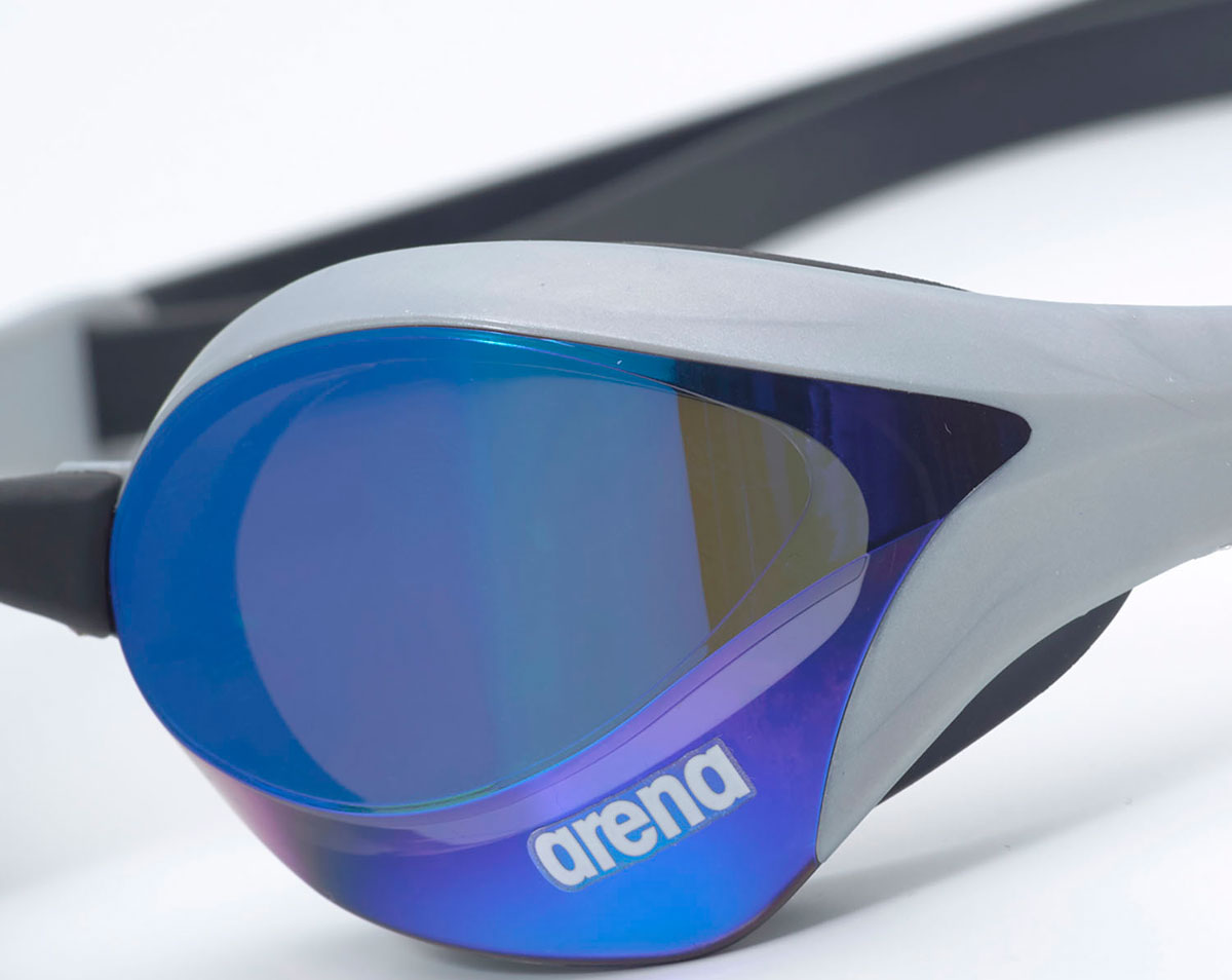 公式大会に出場するために必要なWORLD AQUATICS(世界水泳連盟)承認モデル。1/100秒を争うトップスイマーに向けて開発された、アリーナ最高峰の競泳用スイミングゴーグル。世界中の多くのトップスイマーが国際大会で使用している「cobra」シリーズ。クッションを搭載することにより飛び込み時などの衝撃によるズレを軽減。アイカップ上部の厚みを低く、下部にフィンの形状を搭載することで、スムーズな水の流れを実現。アイカップ上部のレンズ面を目に近づけることにより、前方方向の視野を広く確保。サイド部分のバーによりフィット感を向上。5サイズの鼻ベルトが同梱されており、顔の形に合わせた調整が可能。ミラー加工レンズ。