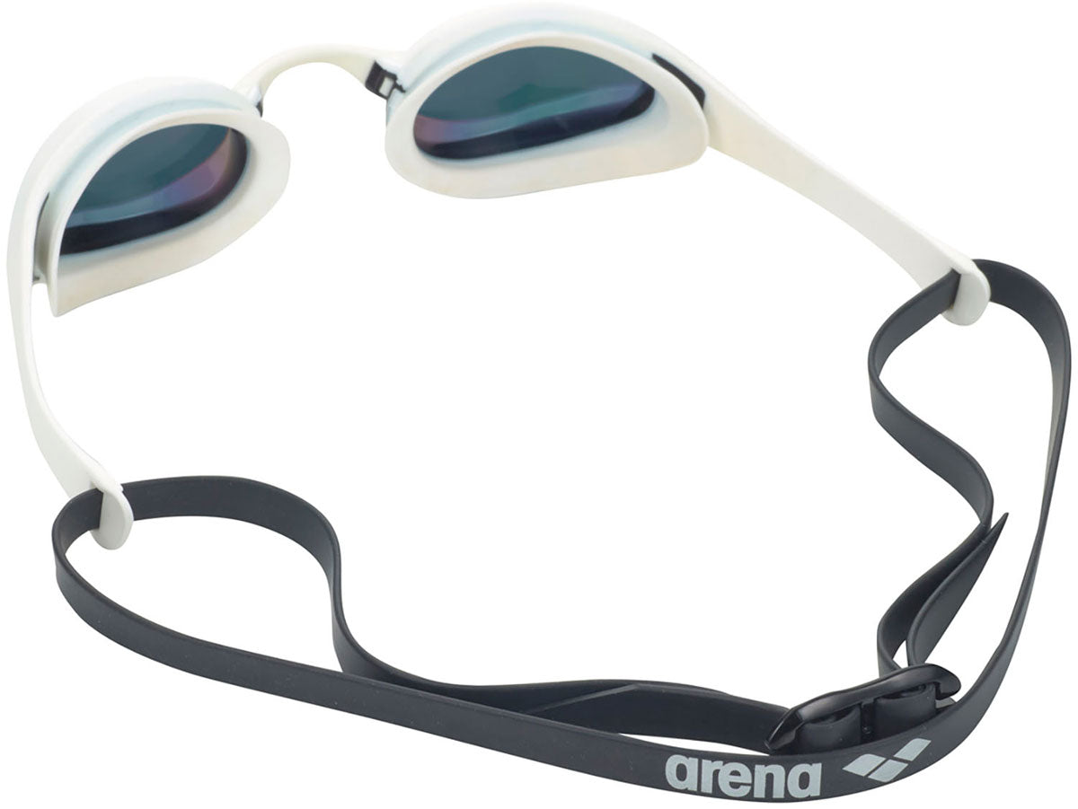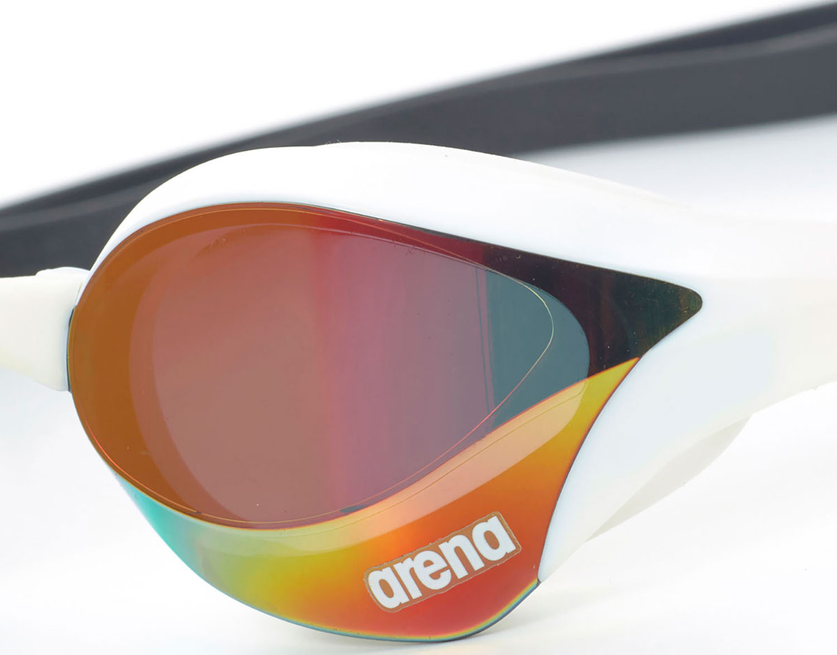 公式大会に出場するために必要なWORLD AQUATICS(世界水泳連盟)承認モデル。1/100秒を争うトップスイマーに向けて開発された、アリーナ最高峰の競泳用スイミングゴーグル。世界中の多くのトップスイマーが国際大会で使用している「cobra」シリーズ。クッションを搭載することにより飛び込み時などの衝撃によるズレを軽減。アイカップ上部の厚みを低く、下部にフィンの形状を搭載することで、スムーズな水の流れを実現。アイカップ上部のレンズ面を目に近づけることにより、前方方向の視野を広く確保。サイド部分のバーによりフィット感を向上。5サイズの鼻ベルトが同梱されており、顔の形に合わせた調整が可能。ミラー加工レンズ。