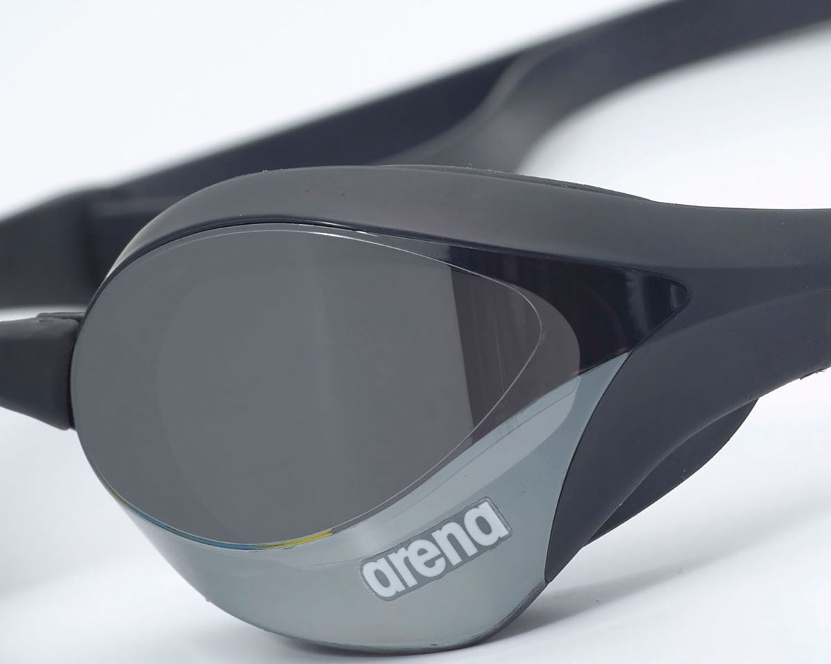 公式大会に出場するために必要なWORLD AQUATICS(世界水泳連盟)承認モデル。1/100秒を争うトップスイマーに向けて開発された、アリーナ最高峰の競泳用スイミングゴーグル。世界中の多くのトップスイマーが国際大会で使用している「cobra」シリーズ。クッションを搭載することにより飛び込み時などの衝撃によるズレを軽減。アイカップ上部の厚みを低く、下部にフィンの形状を搭載することで、スムーズな水の流れを実現。アイカップ上部のレンズ面を目に近づけることにより、前方方向の視野を広く確保。サイド部分のバーによりフィット感を向上。5サイズの鼻ベルトが同梱されており、顔の形に合わせた調整が可能。ミラー加工レンズ。