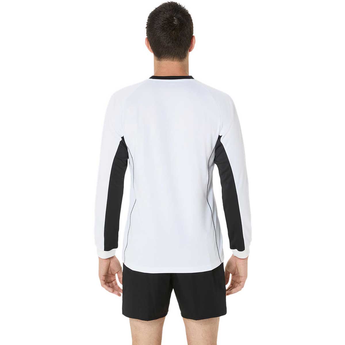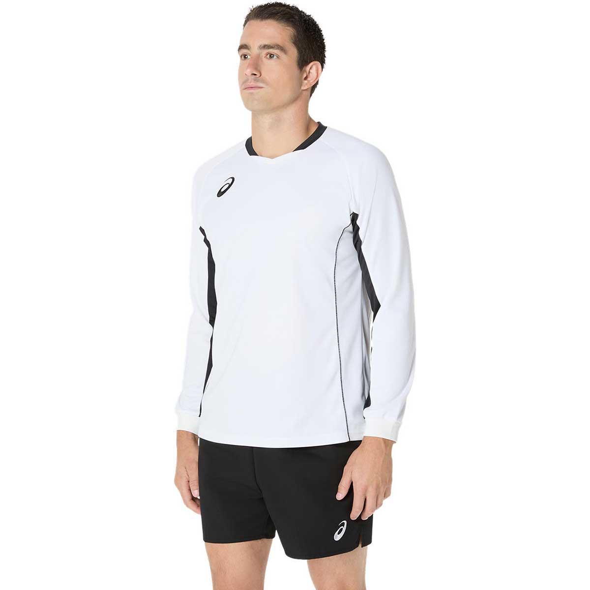 右胸のアシックスマークは刺繍で表現、前後身頃に袖口から裾までのステッチがポイントのゲームプラティクス長袖シャツ