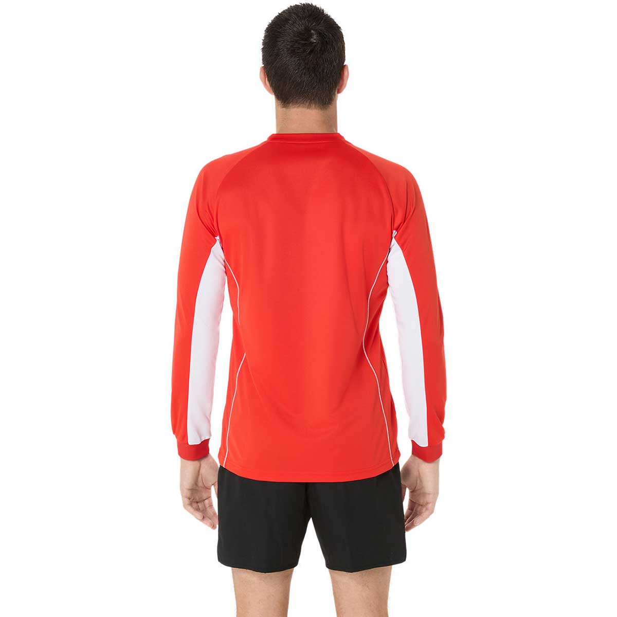 右胸のアシックスマークは刺繍で表現、前後身頃に袖口から裾までのステッチがポイントのゲームプラティクス長袖シャツ